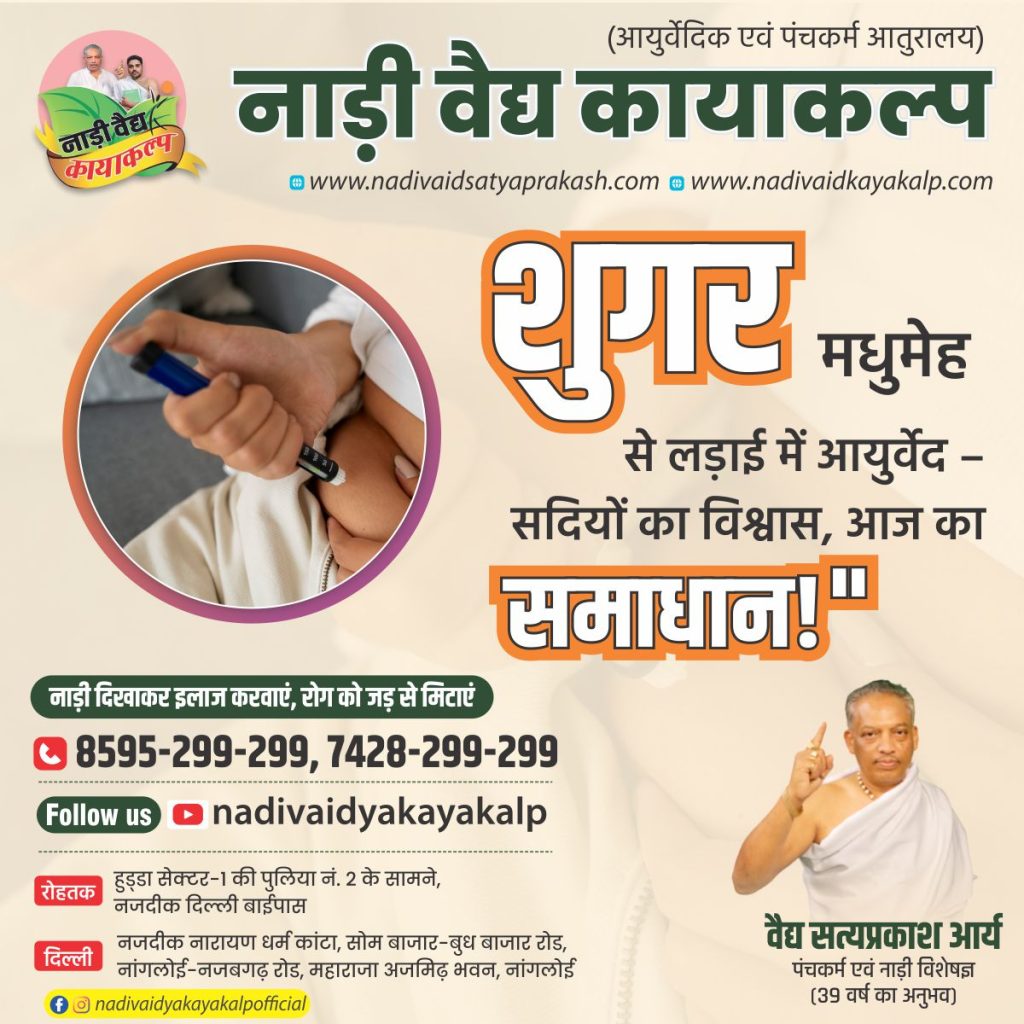 शुगर यानी मधुमेह आज के समय की सबसे आम लेकिन खतरनाक बीमारियों में से एक बन चुकी है। एलोपैथी इसे जीवनभर चलने वाली बीमारी मानती है, जिसका इलाज सिर्फ दवाओं और इंसुलिन से संभव है। लेकिन आयुर्वेद इस धारणा को नकारता है। नाड़ी वैद्य सत्यप्रकाश आर्य जी का 39+ वर्षों का अनुभव कहता है – शुगर का स्थायी समाधान संभव है, वो भी बिना साइड इफेक्ट और बिना इंसुलिन के। आइए इस ब्लॉग में विस्तार से जानते हैं कि आयुर्वेद में शुगर क्या है, इसके लक्षण, कारण और उसका प्राकृतिक इलाज क्या है।