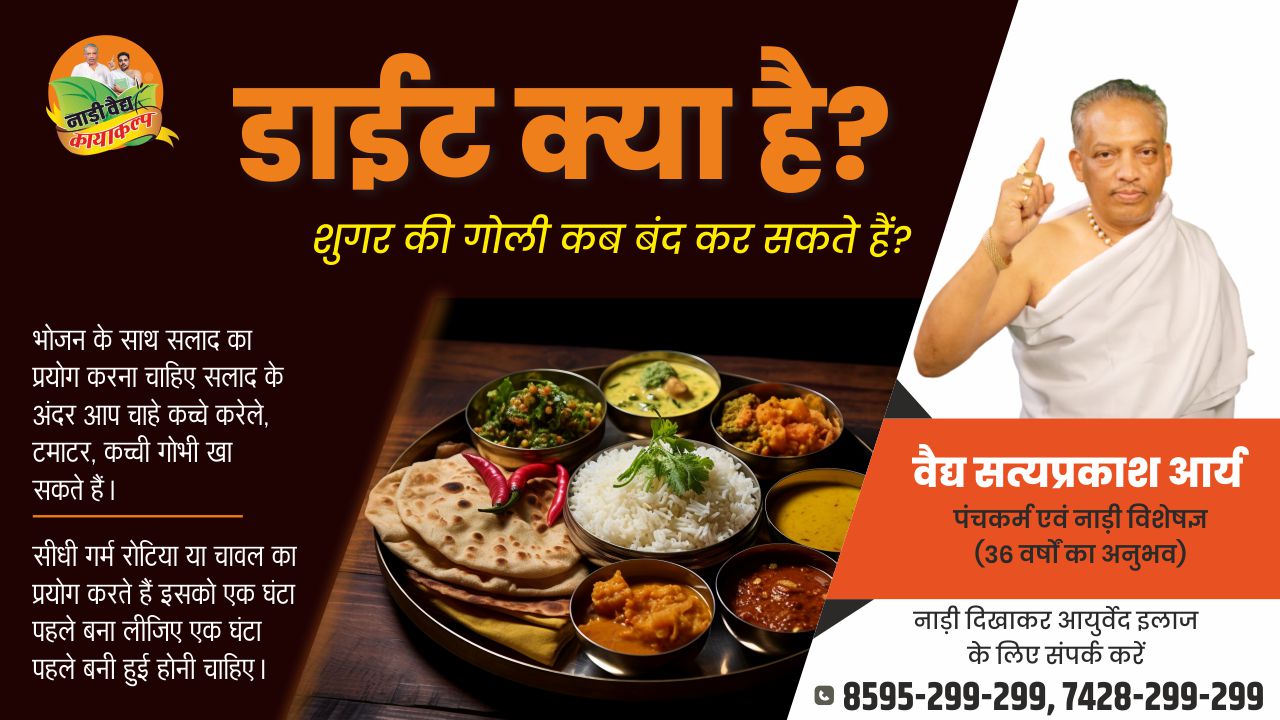 नाड़ी वैद्य कायाकल्प के अंदर वैद्य सत्यप्रकाश आर्य ने बताया कि शुगर के लिए क्या डाइट प्लान होना चाहिए और हम दवाई गोली कब बंद कर सकते हैं, कैसे बंद हो सकती है यह गोली।